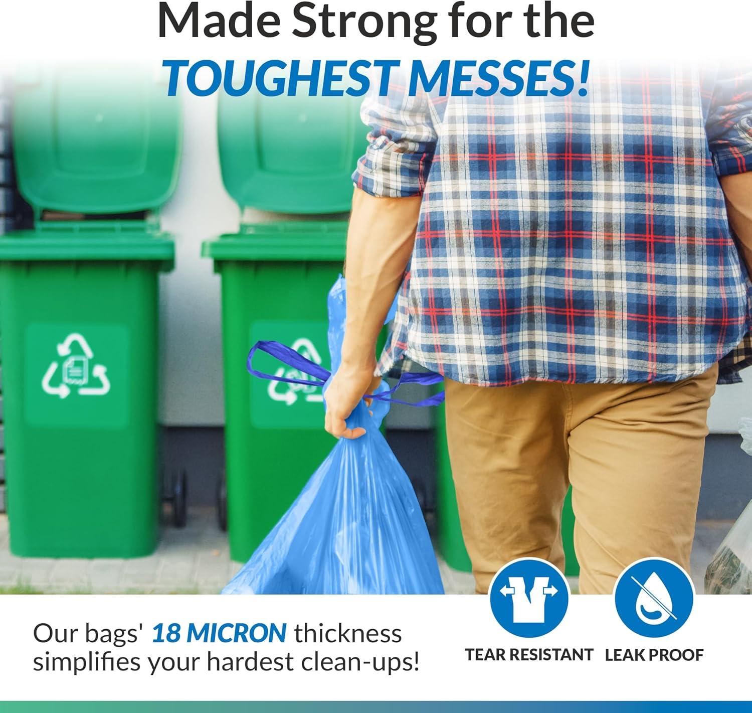 Durable Construction: Our drawstring trash bags are manufactured with tear-resistant and leakproof technology to make your cleanups easy.