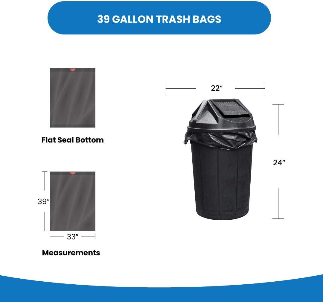 39 Gallon DrawString Trash Bags | Black Trash Bags with Red Drawstrings | 200 Count