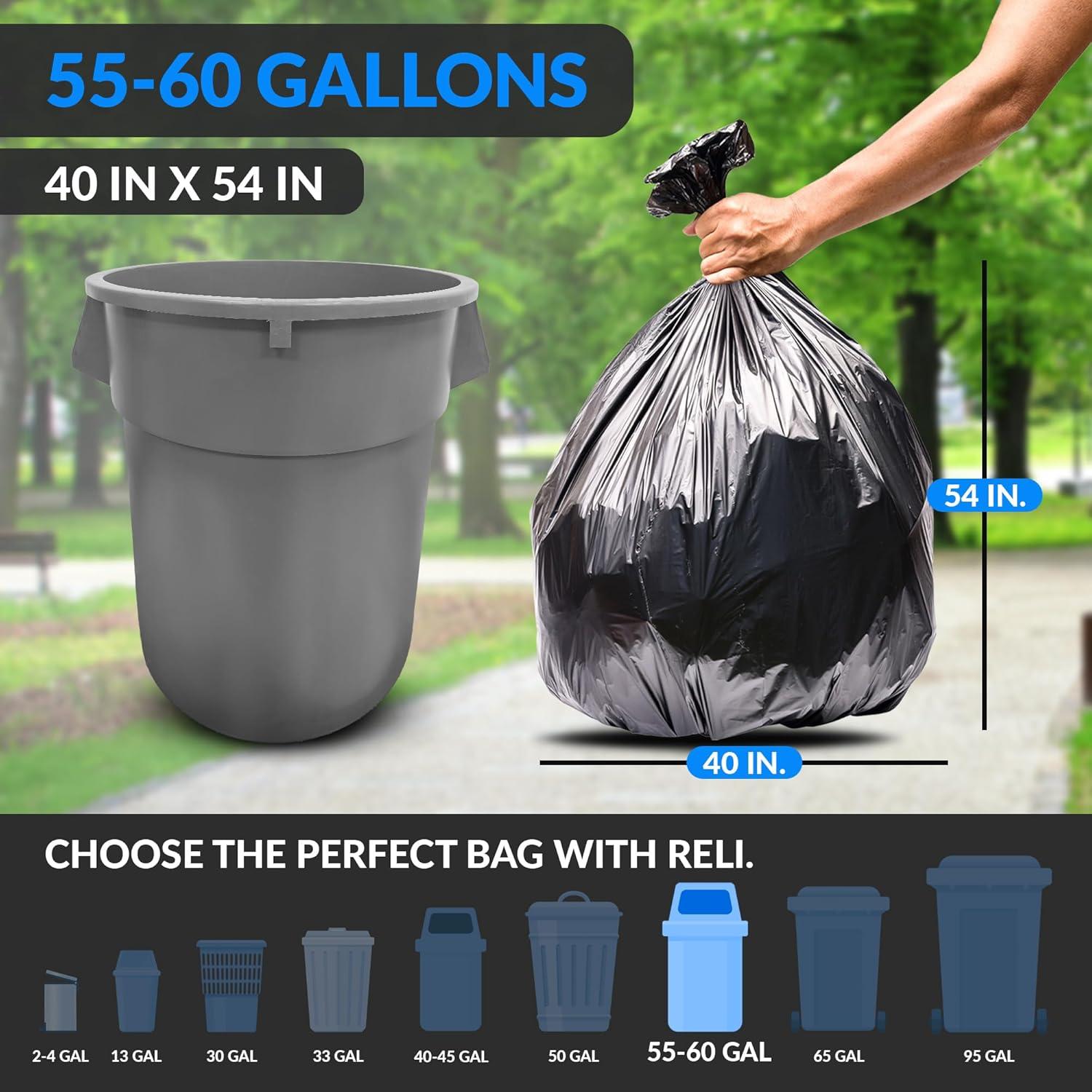Large Capacity: 55 gallon trash bags (40×54″) tackle tough jobs, ideal for 50, 55, and 60 gallon cans