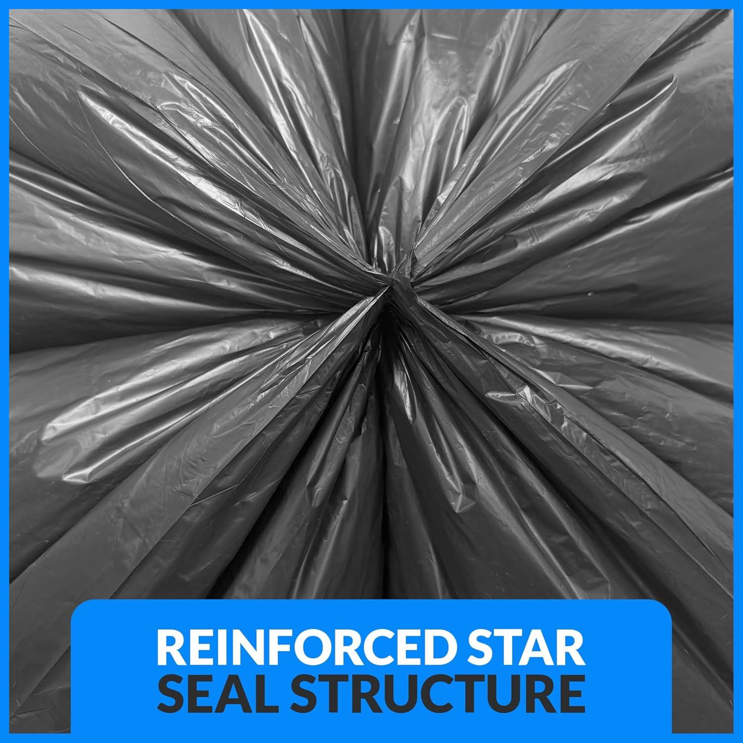 Heavy Duty: 55 gallon trash bags (17 microns thick) offer superior strength with a leak-proof, tear-resistant star seal design.