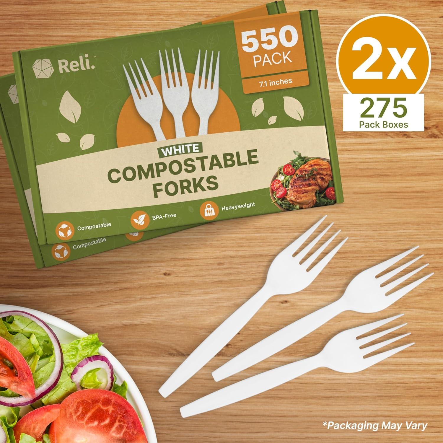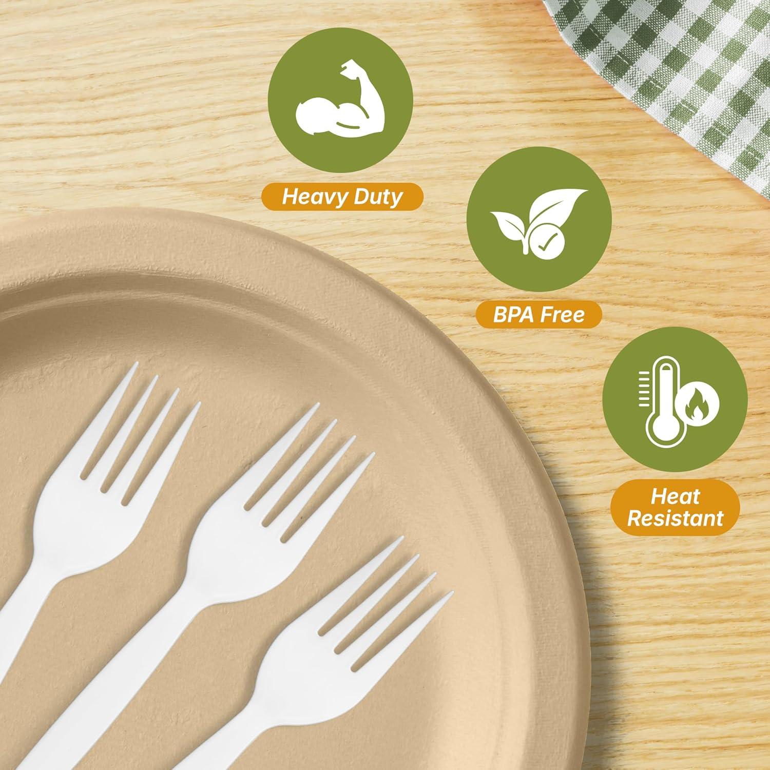 Compostable Forks (550 Pack) | Disposable Forks, Heavy Duty | BPA-Free, Heavyweight