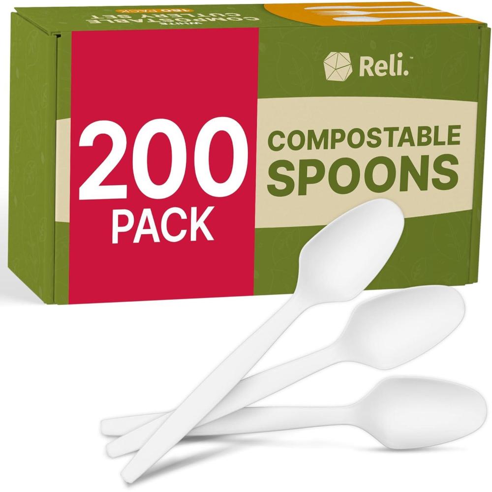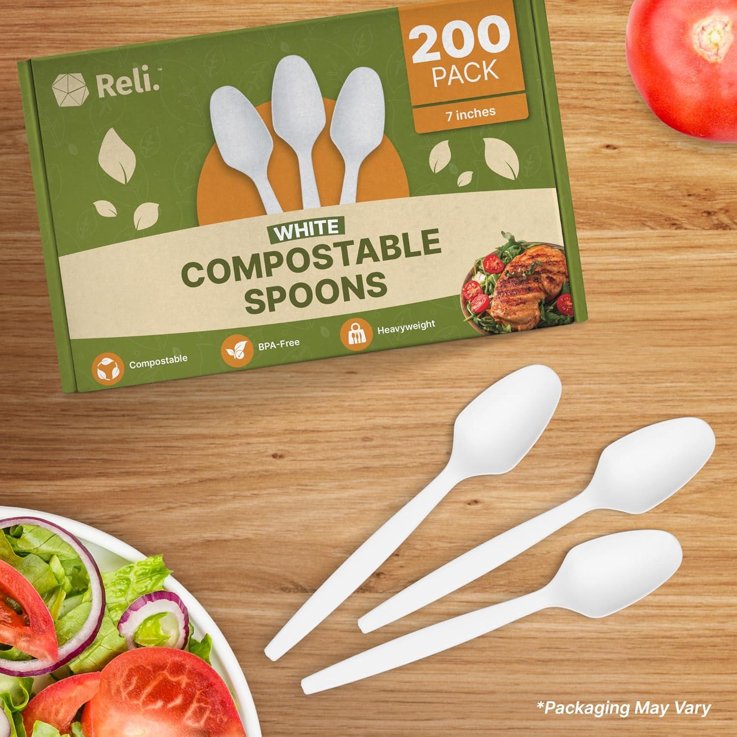 Compostable Spoons (200 Pack) | Disposable Spoons, Heavy Duty | BPA-Free, Heavyweight