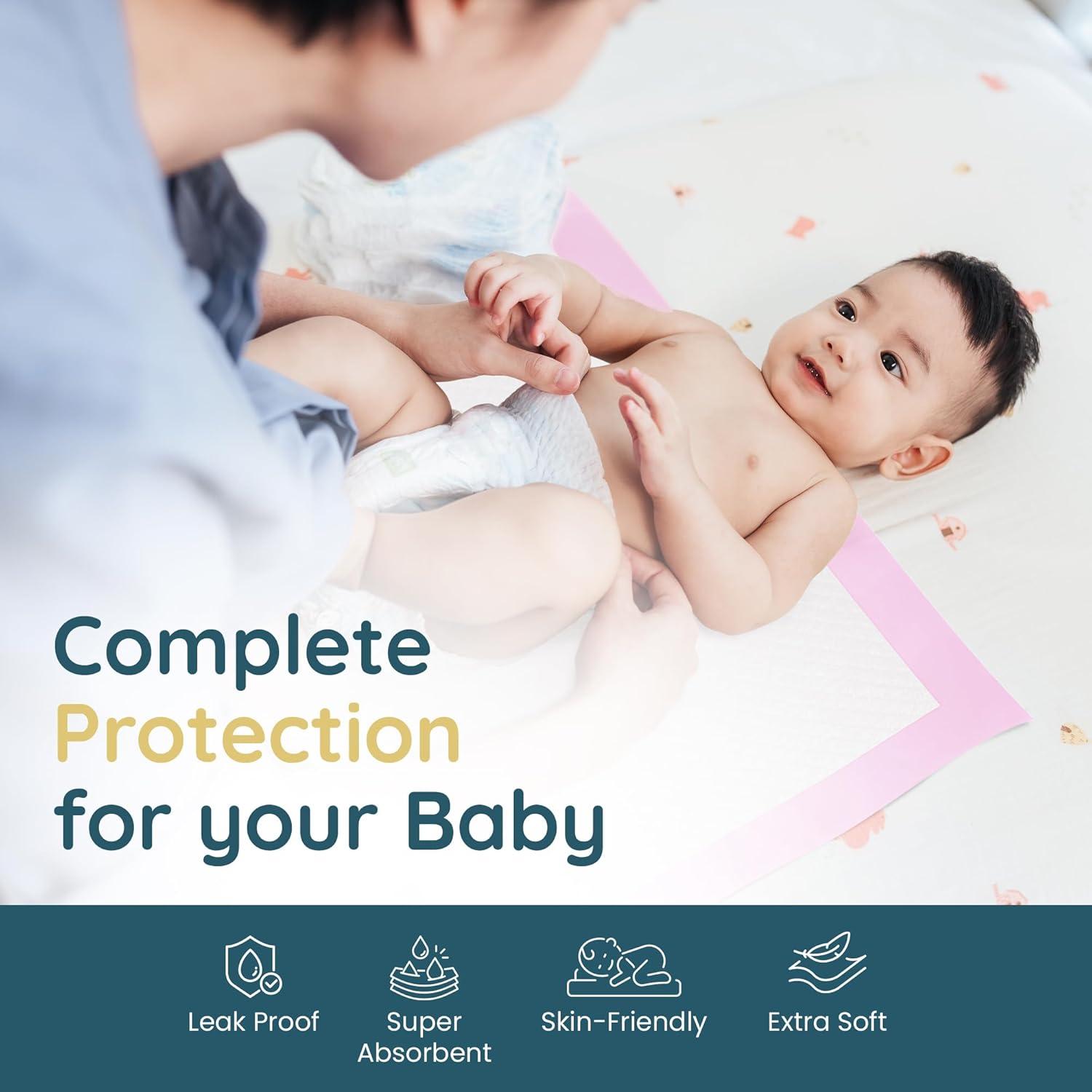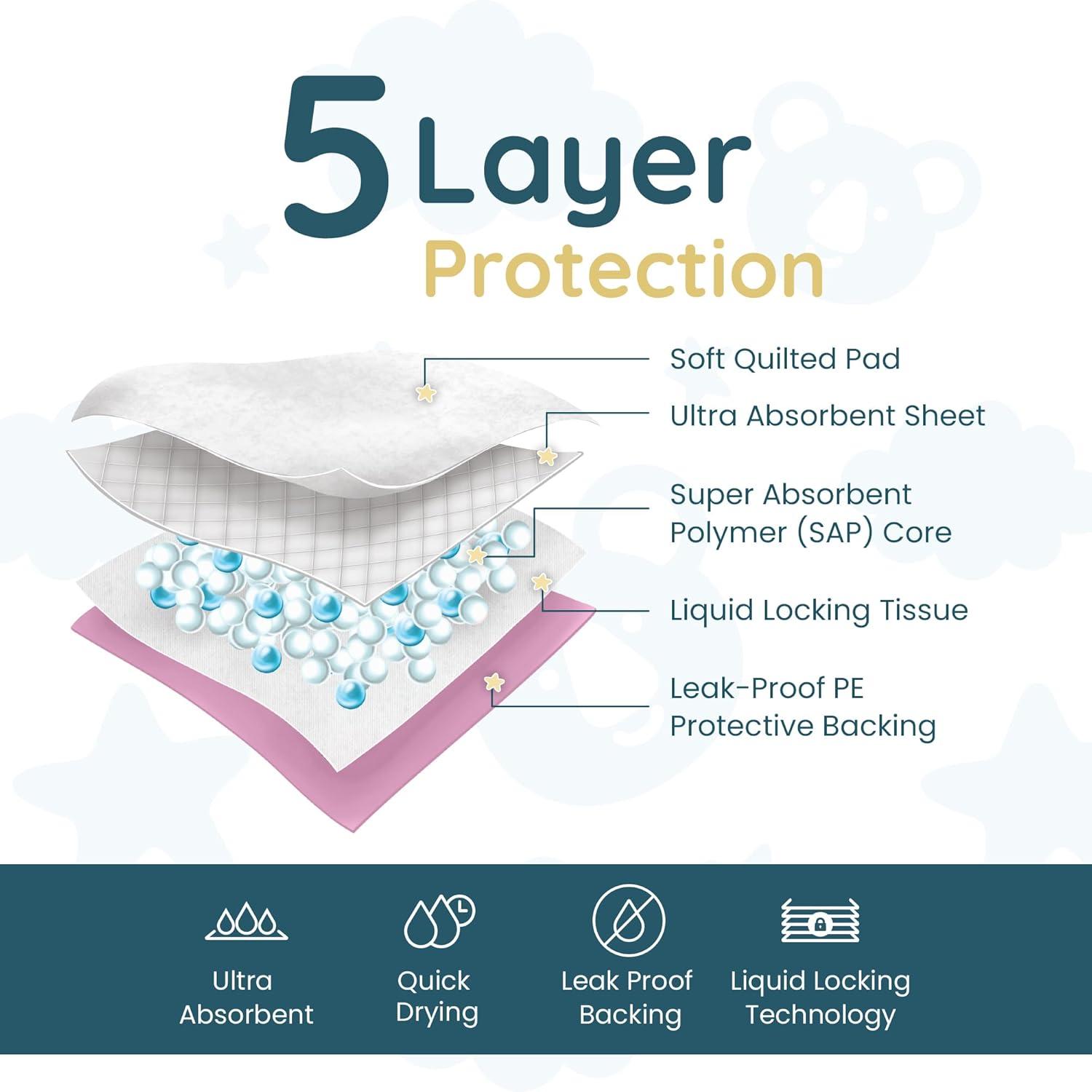 Super Absorbent & Leak-Proof: With 5 protective layers, our diaper pads quickly absorb and lock in liquids, preventing leaks and messes while providing complete protection.