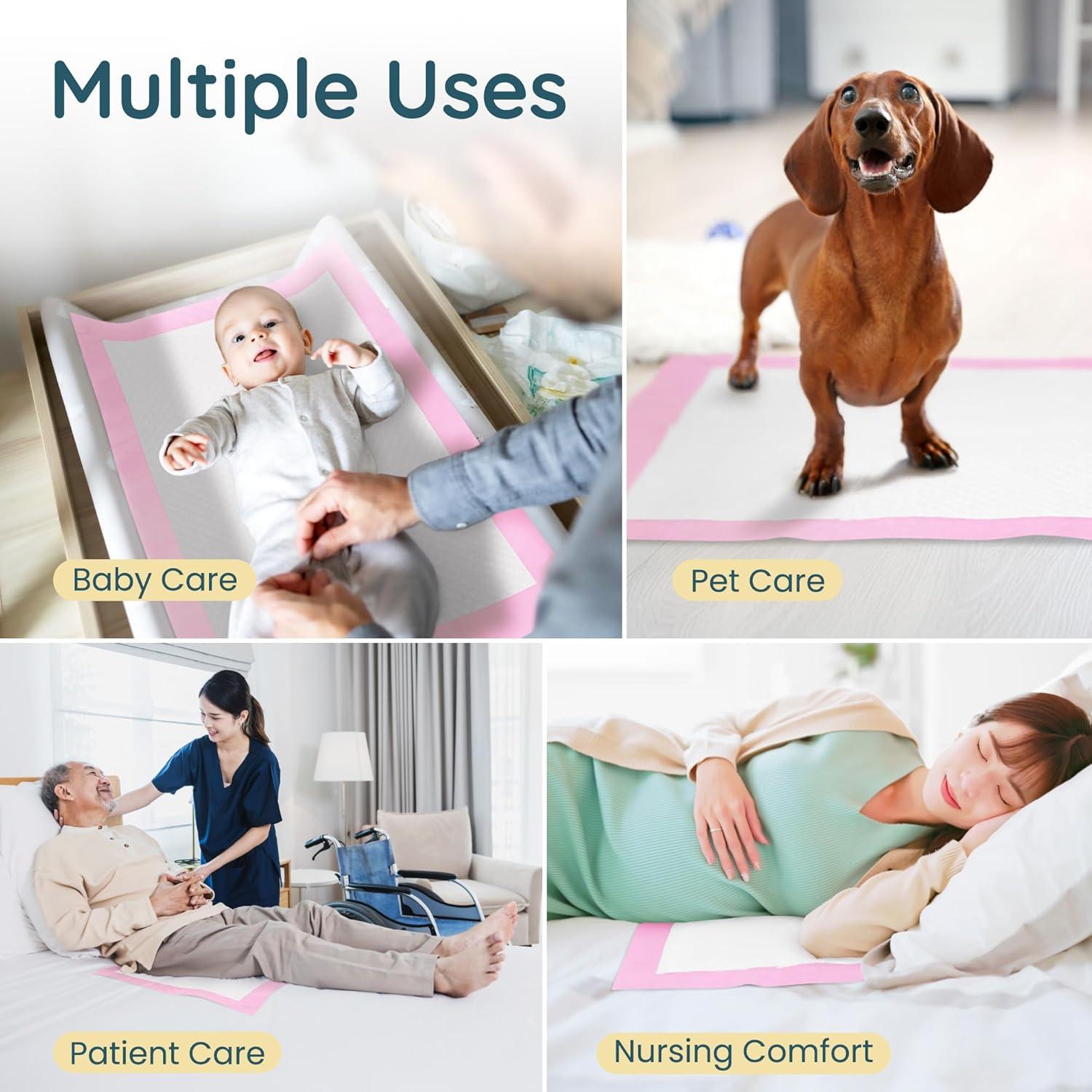 Multi-Purpose: Disposable underpads are versatile for use on chairs, beds, floors, or in strollers for all ages. Perfect for diaper changes, menstrual care, pets, nursing and more.