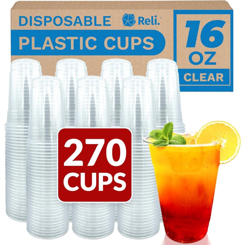 Plastic Cups | 16 oz | 270 Cups | Clear | PET Material | Disposable