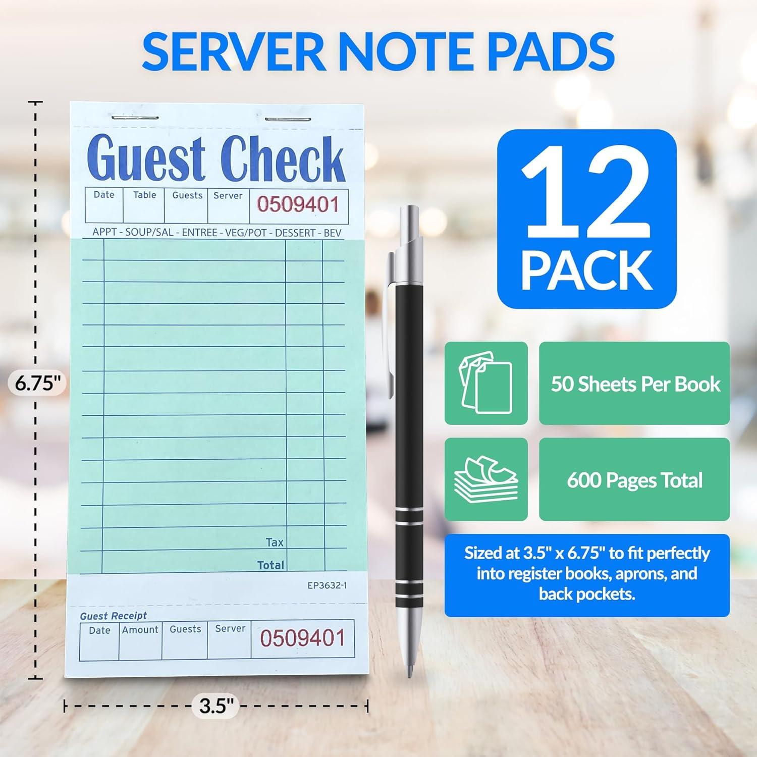 Reli. Server Note Pads (12 Pack, 50 Sheets/Pad) Guest Checks Books for Servers | Note Pads for Waitress, Restaurant Orders