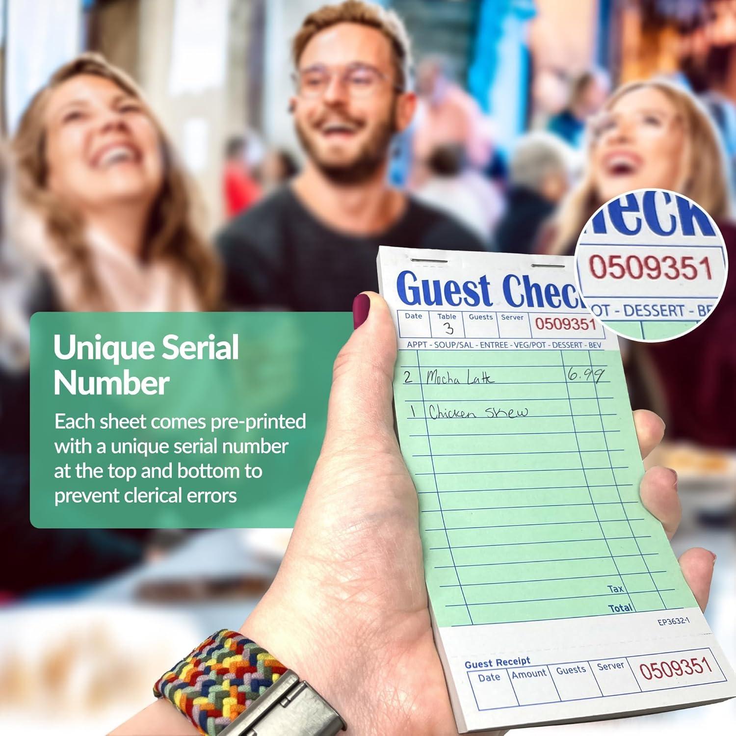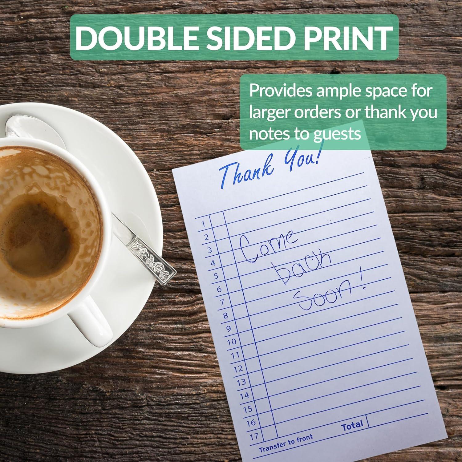 Perfectly Sized: 3.5″ x 6.75″ guest check pads are made to fit in standard register book covers & server aprons. Perfect for taking guest orders at restaurants, cafes, and more!