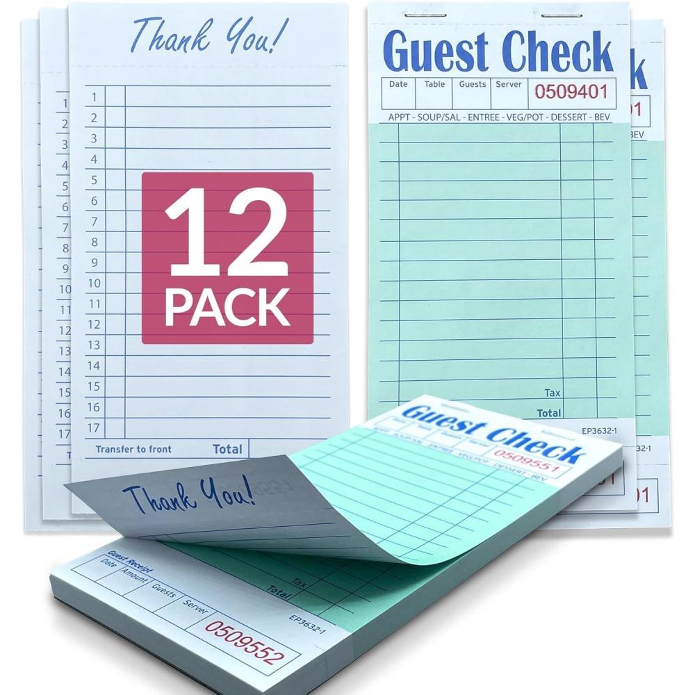 Bulk Value: 12 pack of 1-part carbonless server note pads (50 checks per book, 600 sheets total)