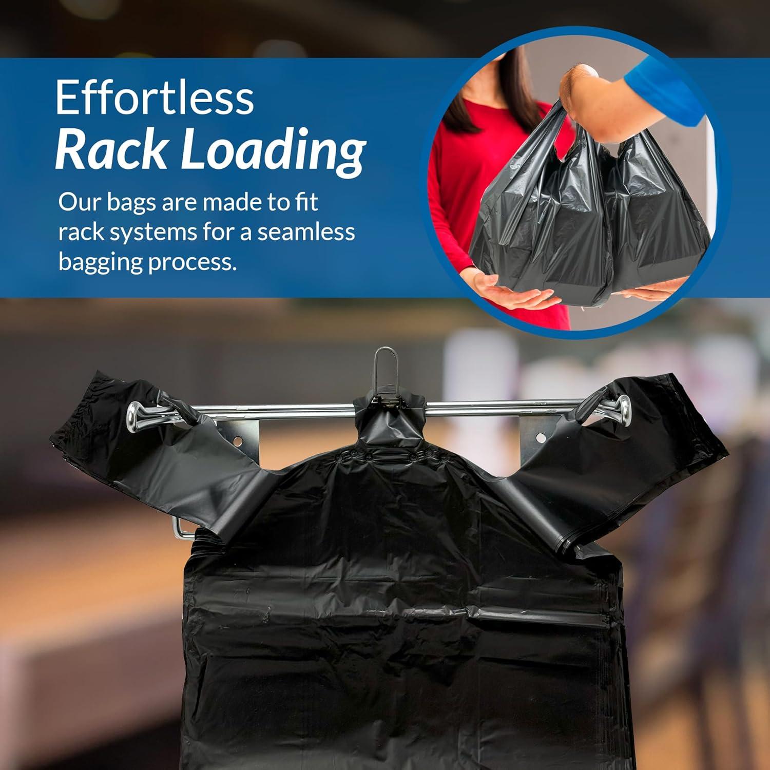 Multi-Purpose Use: Perfect for groceries, retail, restaurants, take-out, shopping and more—our plastic bags are designed to handle it all. Compatible with standard rack systems for fast, efficient bagging.