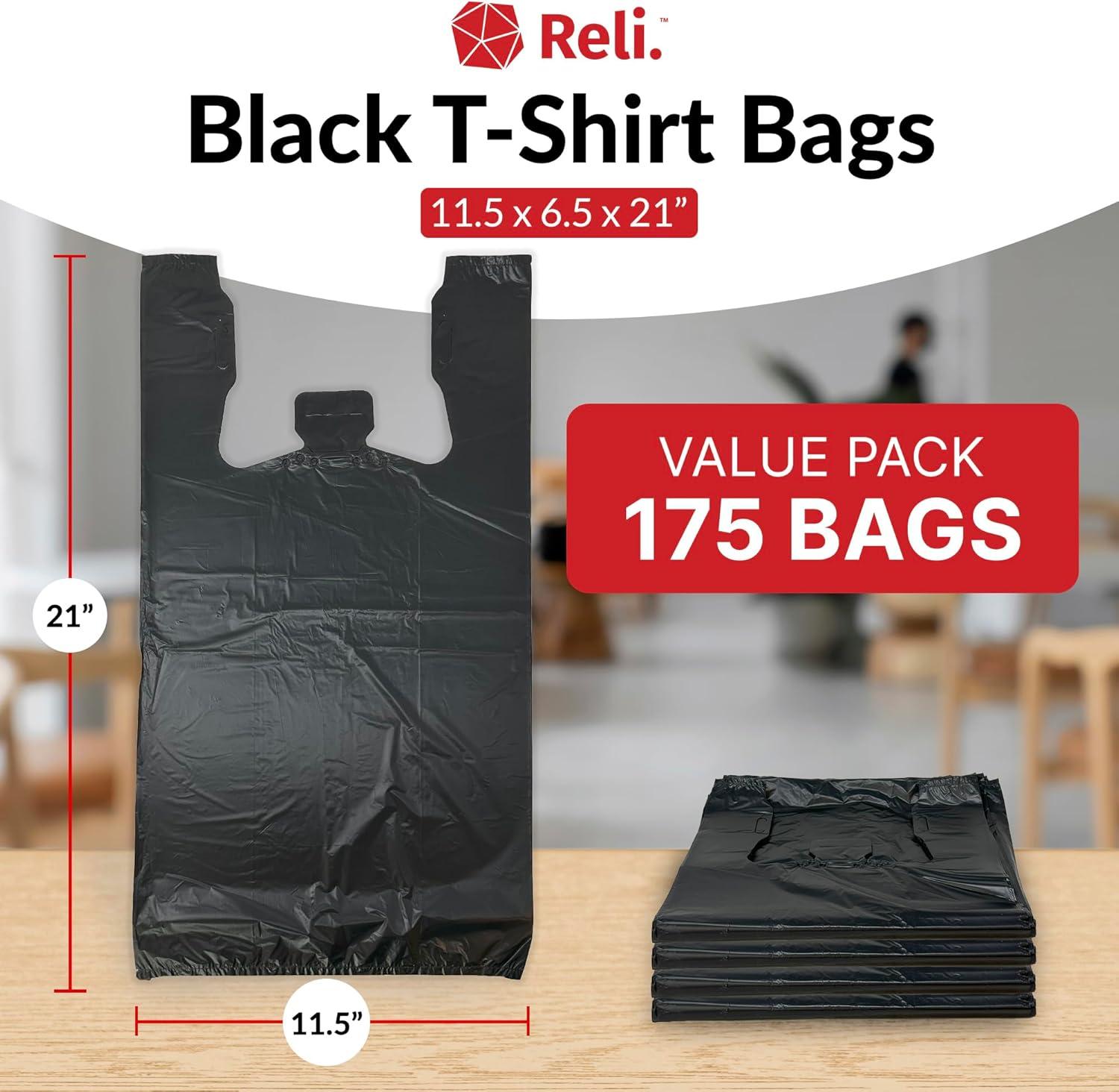 Reli. T-shirt Plastic Bags | 175 Pack | Black Plastic Bags with Handles (Plain) | Ideal for Grocery, Shopping, Food Take Out/To Go, Small Business